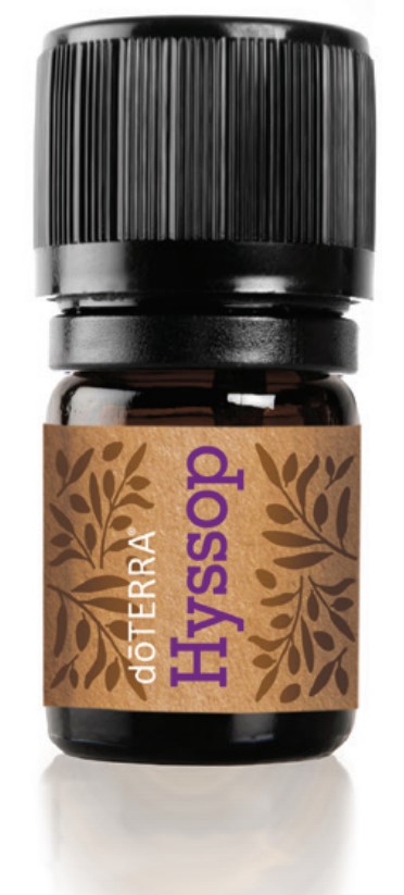 with dark green leaves and purple flowers. The Latin word hyssopus is likely related to the Hebrew azob meaning “holy herb.” The plant is commonly used by beekeepers to produce a rich and aromatic honey. dōTERRA CTPG® Hyssop essential oil